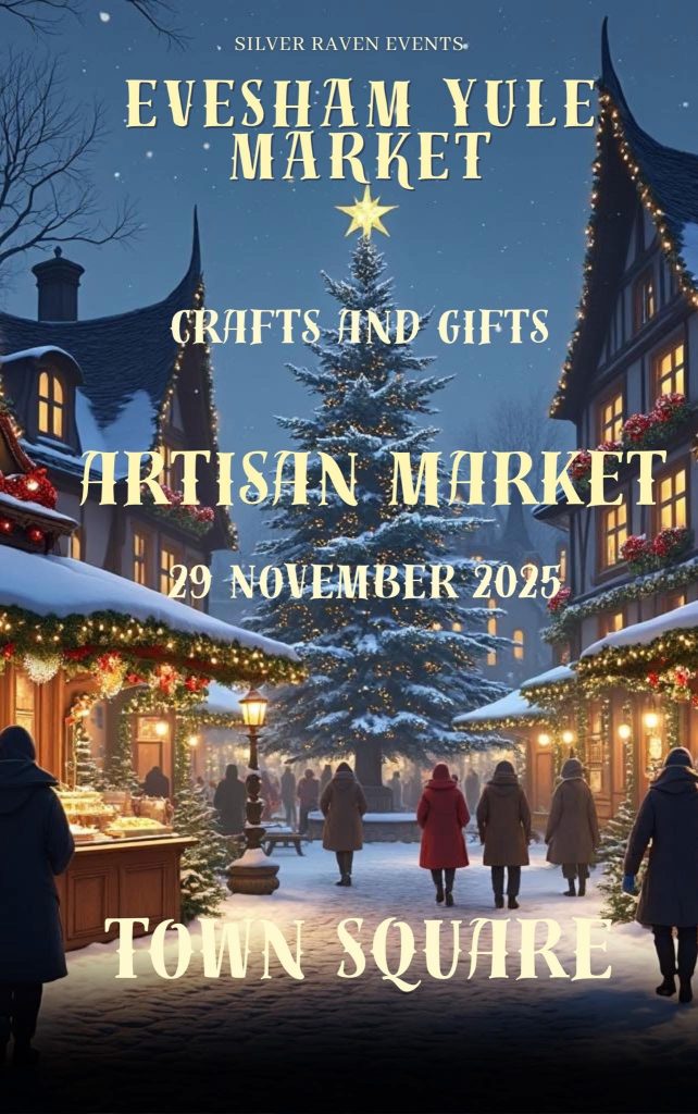 Join us from 10am – 5pm on 29th November for Evesham Yule/Xmas Market, in the Town Square and Bridge Street. Stalls include traditional Xmas decor and gifts, Artisan items and Xmas drinks and food. The Asum Santa will also be around for a photo call!